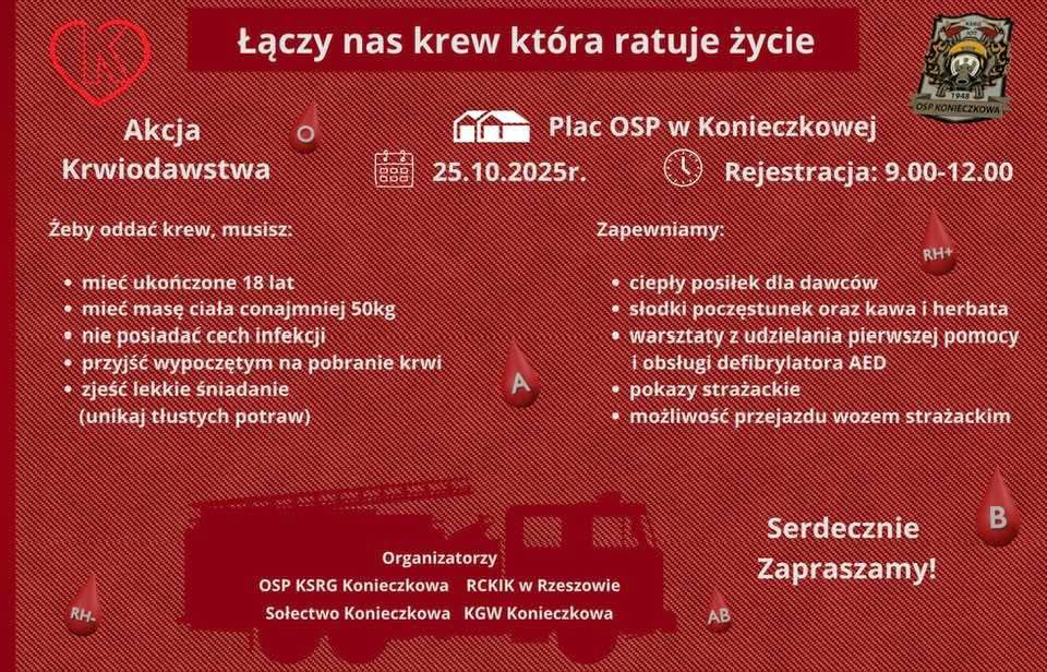W miniony weekend mieliśmy zaszczyt uczestniczyć w Akcji Krwiodawstwa zorganizowanej przez OSP KSRG Konieczkowa, RCKK w Rzeszowie, KGW Konieczkowa, Sołectwo Konieczkowa oraz Eryka Trojanowskiego. Doskonała pogoda, profesjonalna organizacja sprawiły, że cała „akcja” zakończyła się ogromnym powodzeniem. My jako Rzeszowskie WOPR wraz z MDP Konieczkowa, grupa żeńska, dołożyliśmy wszelkich starań aby zaprezentować i przekazać wiedzę w obrębie pierwszej pomocy.