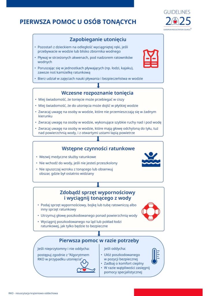 Wśród nich znajduje się kluczowy dla bezpieczeństwa nad wodą algorytm Pierwszej Pomocy w przypadku tonięcia.